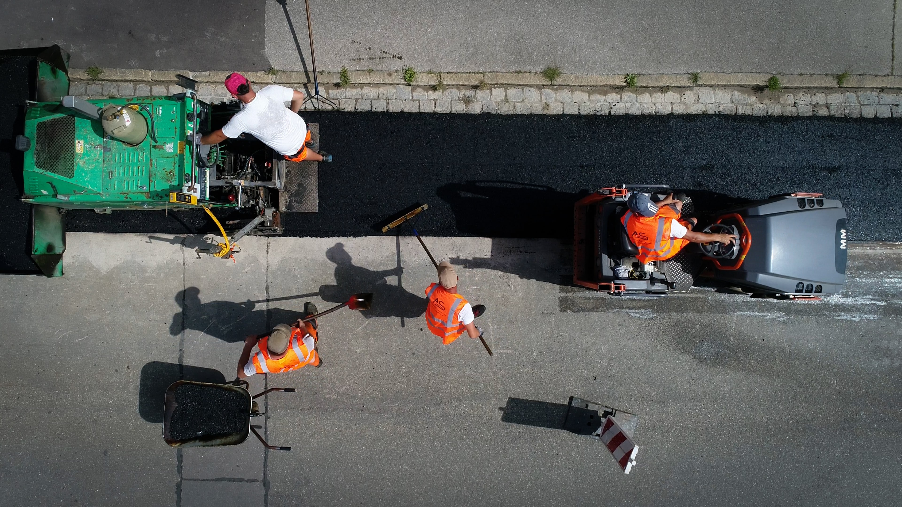 Mit unserem Maschinenpark aus klein- bis mittelgroßen Fertigern sind wir in der Lage, schmale Breiten ab 100 cm wirtschaftlich und in Top-Qualität mit perfekt ebener, dichter und geschlossener Oberfläche auszuführen – insbesondere für Geh- und Radwege. Auch eventuelle Unebenheiten der darunterliegenden Tragschicht lassen sich damit problemlos und sauber ausgleichen.