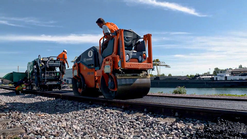 Dank unserer Kleinfertiger für kleine Arbeitsbreiten sind wir in der Lage, auch sehr schmale Flächen wie ein Gleisbett effizient zu realisieren.